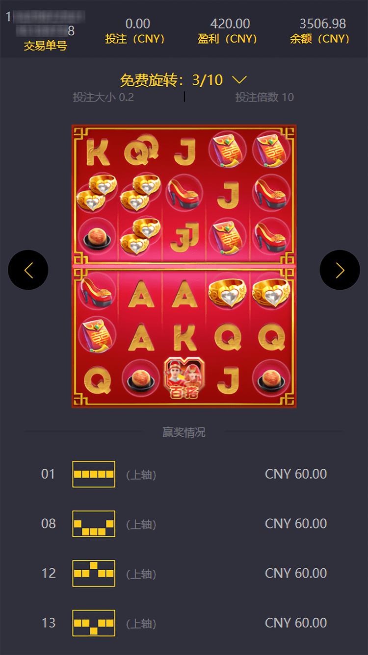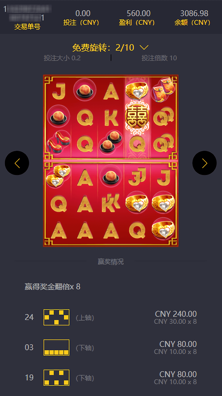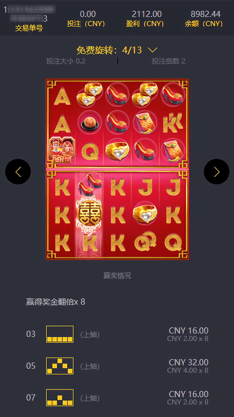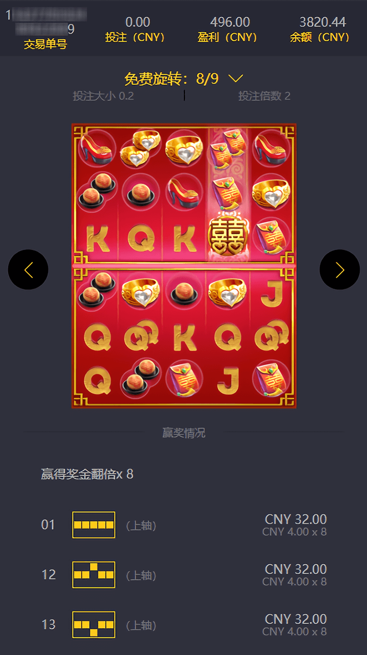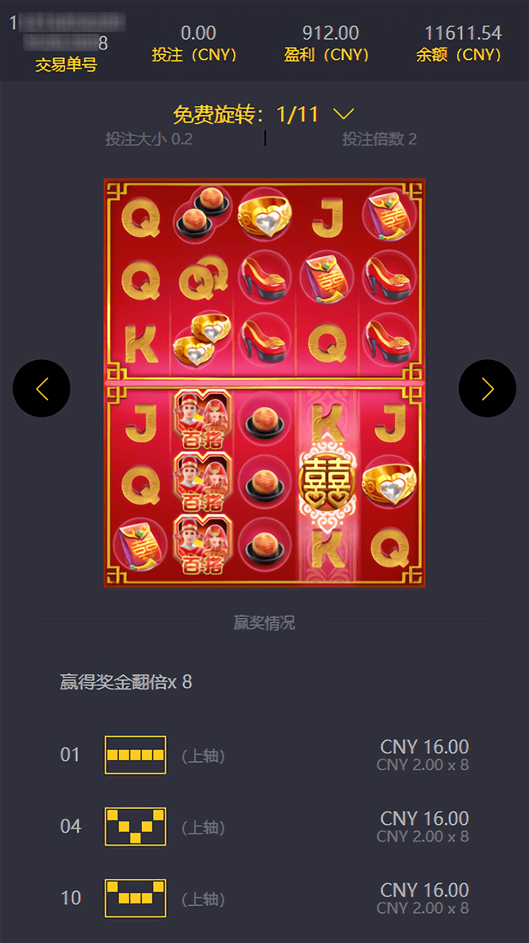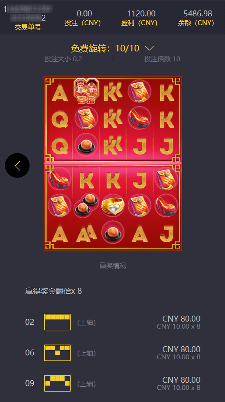 | 当3个夺宝符号出现在主游戏卷轴的任意位置时,将触发免费旋转模式,并获得8次免费旋转。 | ||